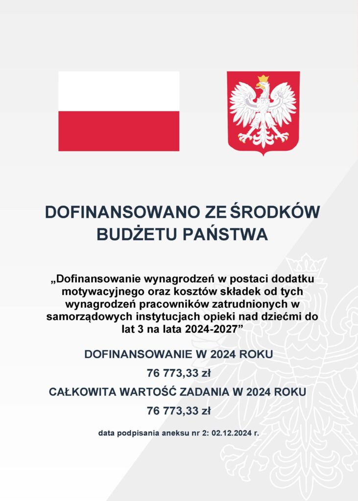 Aktualizacja dofinansowania wynagrodzeń w postaci dodatku motywacyjnego oraz kosztów składek od tych wynagrodzeń pracowników zatrudnionych w samorządowych instytucjach opieki nad dziećmi w wieku do lat 3 na lata 2024–2027